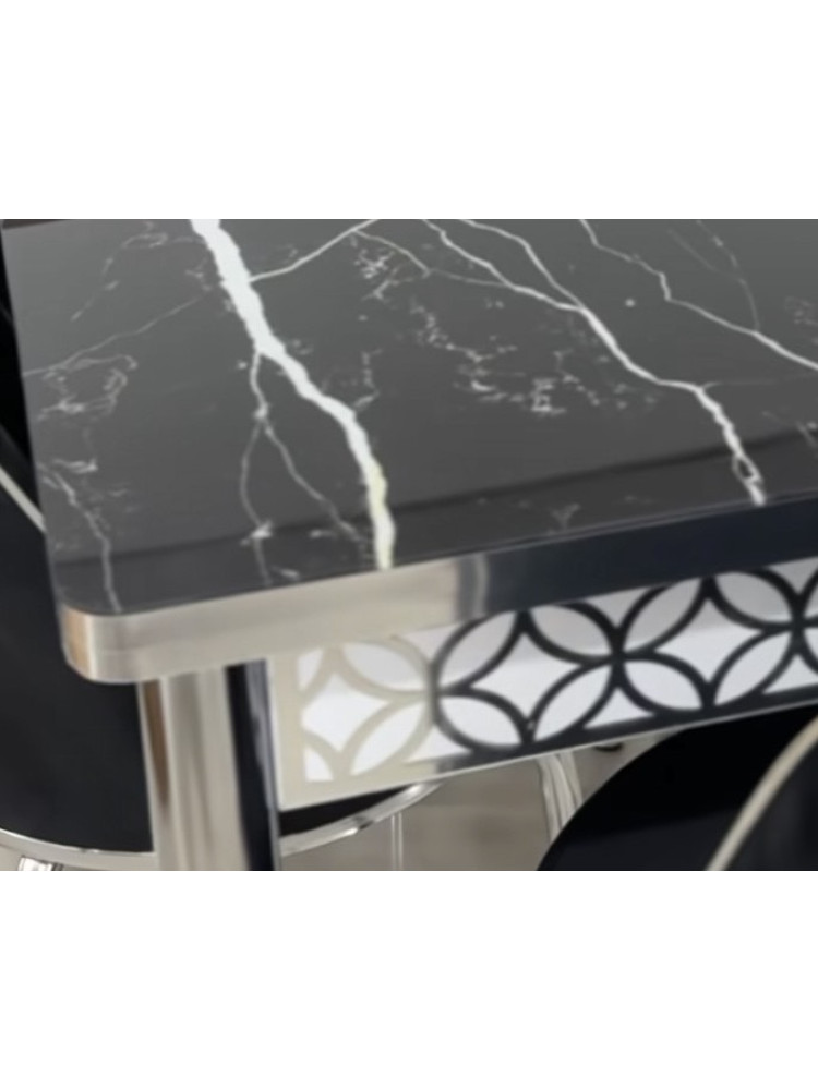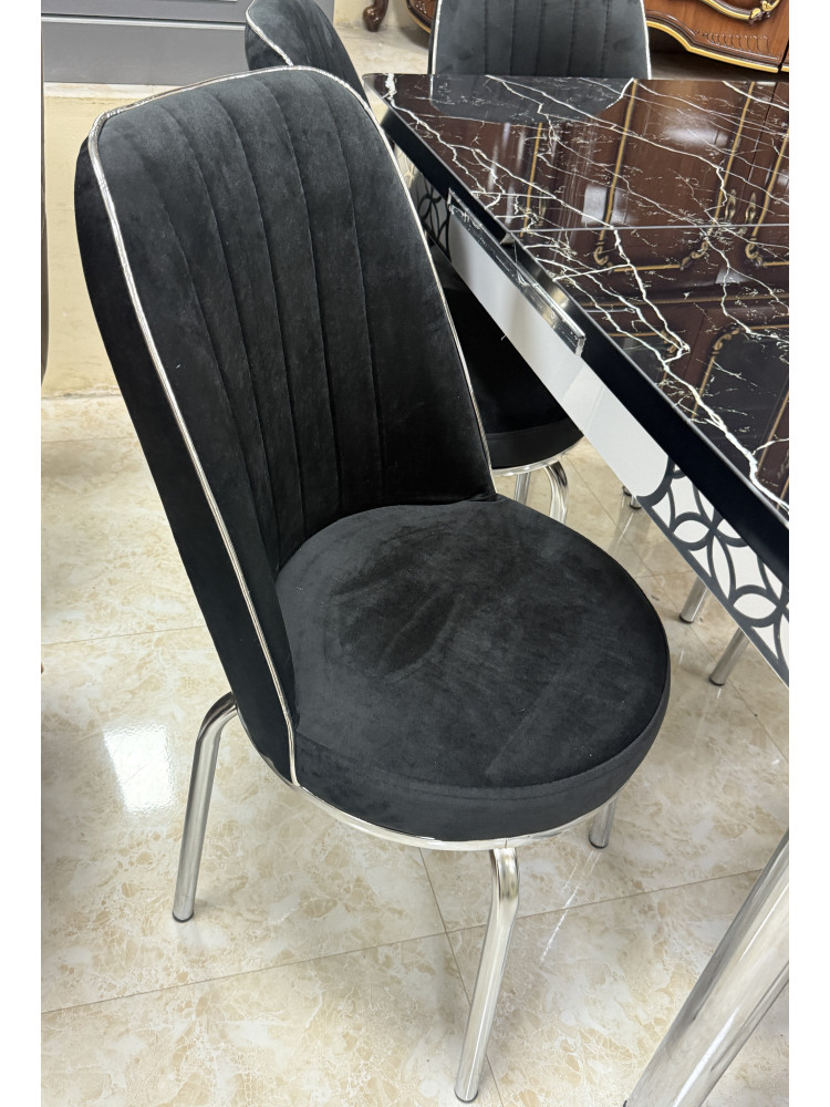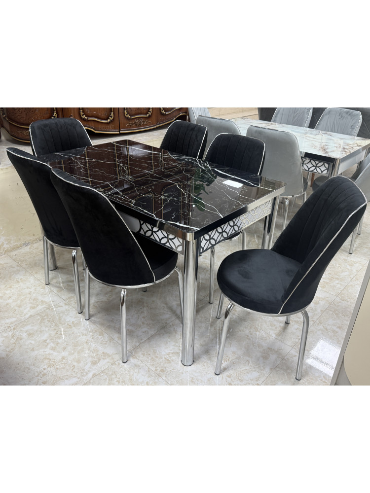 Խոհանոցային սեղան+6աթոռ 1-1384 սև+արծաթ